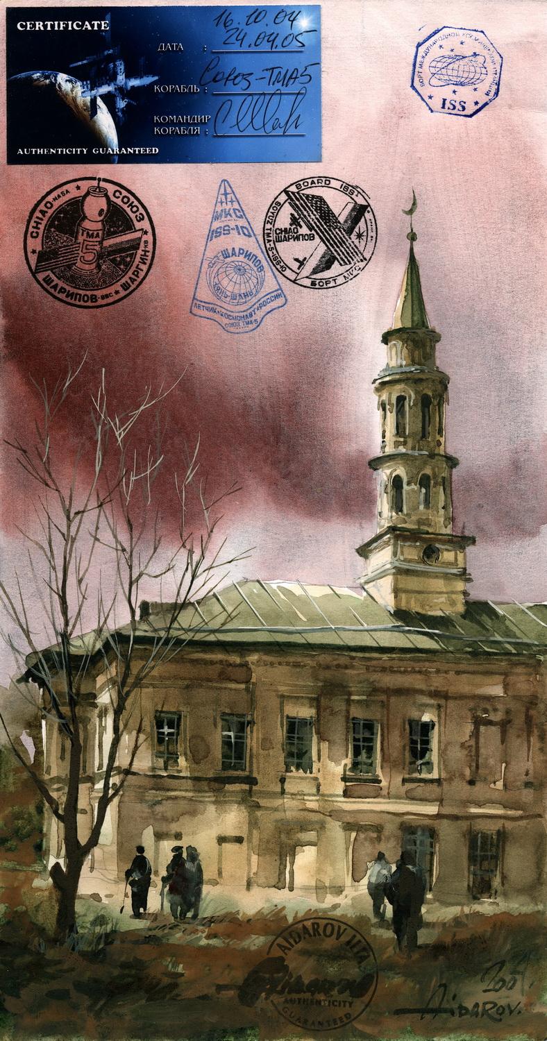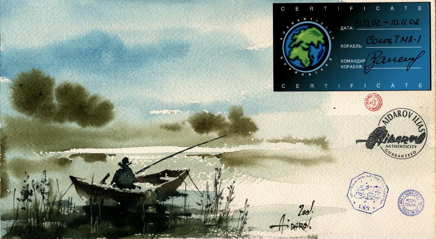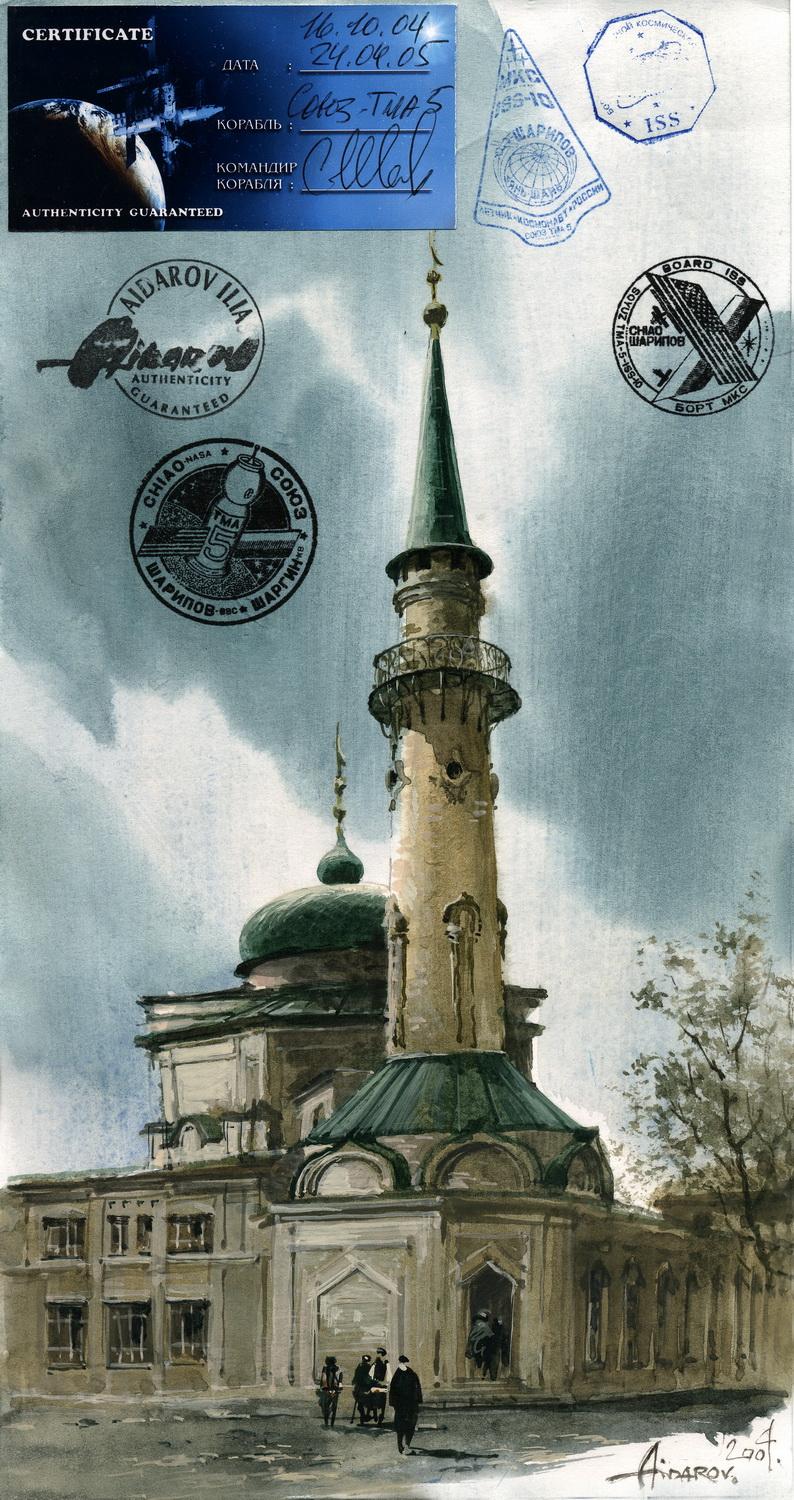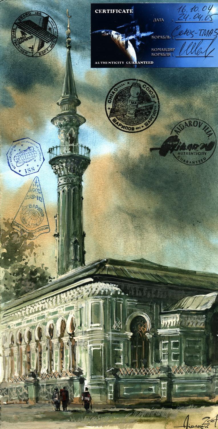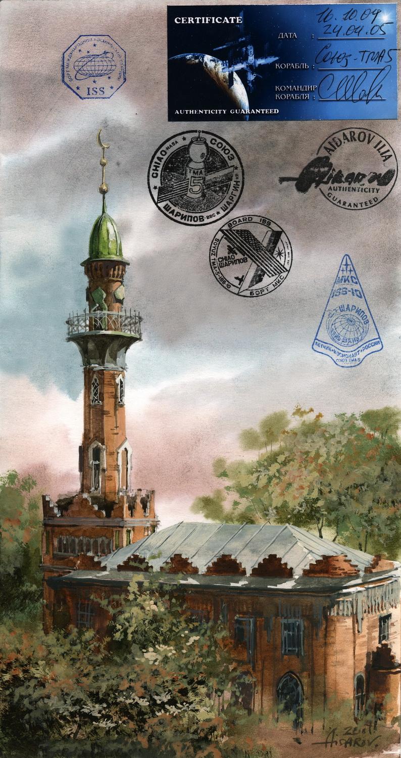 В 2002г. Ильяс Айдаров стал первым в истории человечества художником, которому посчастливелось провести персональную художественную выставку в космосе на борту Международной Космической Станции