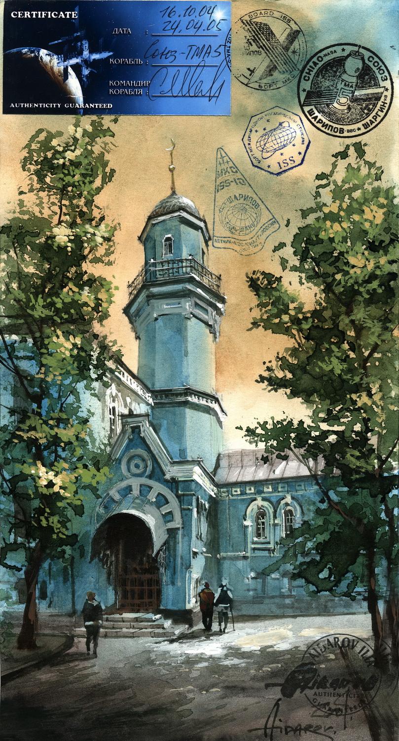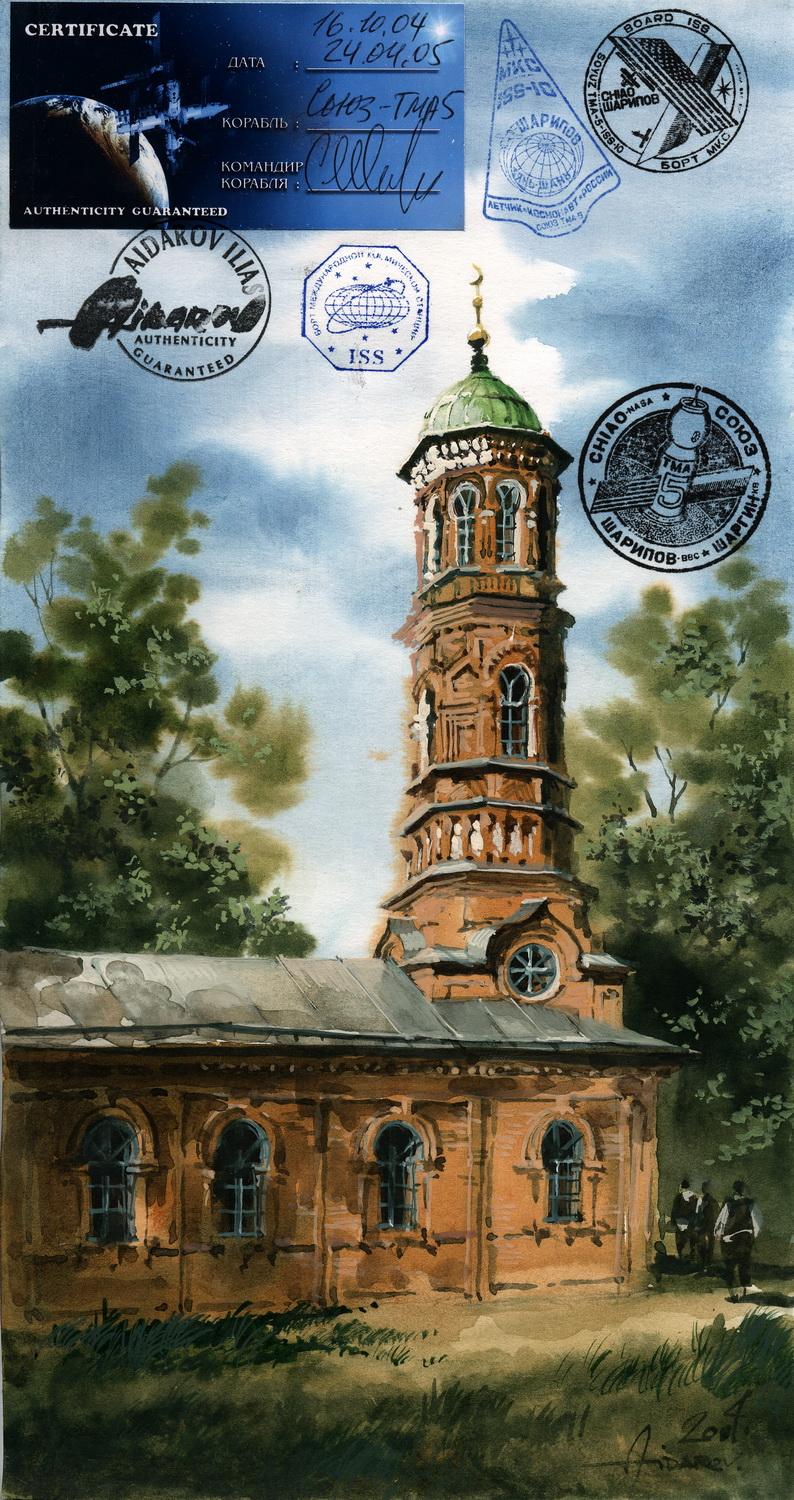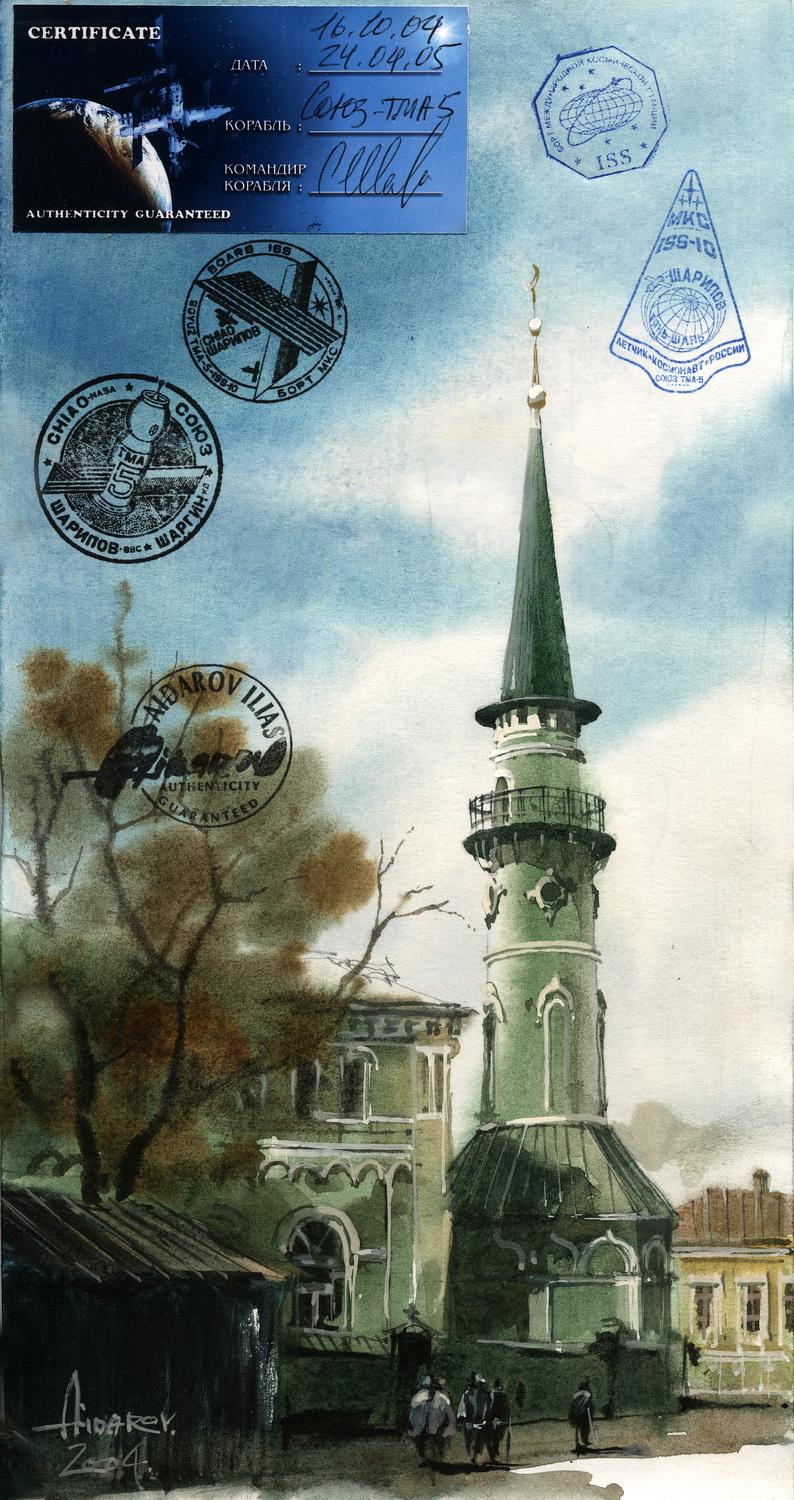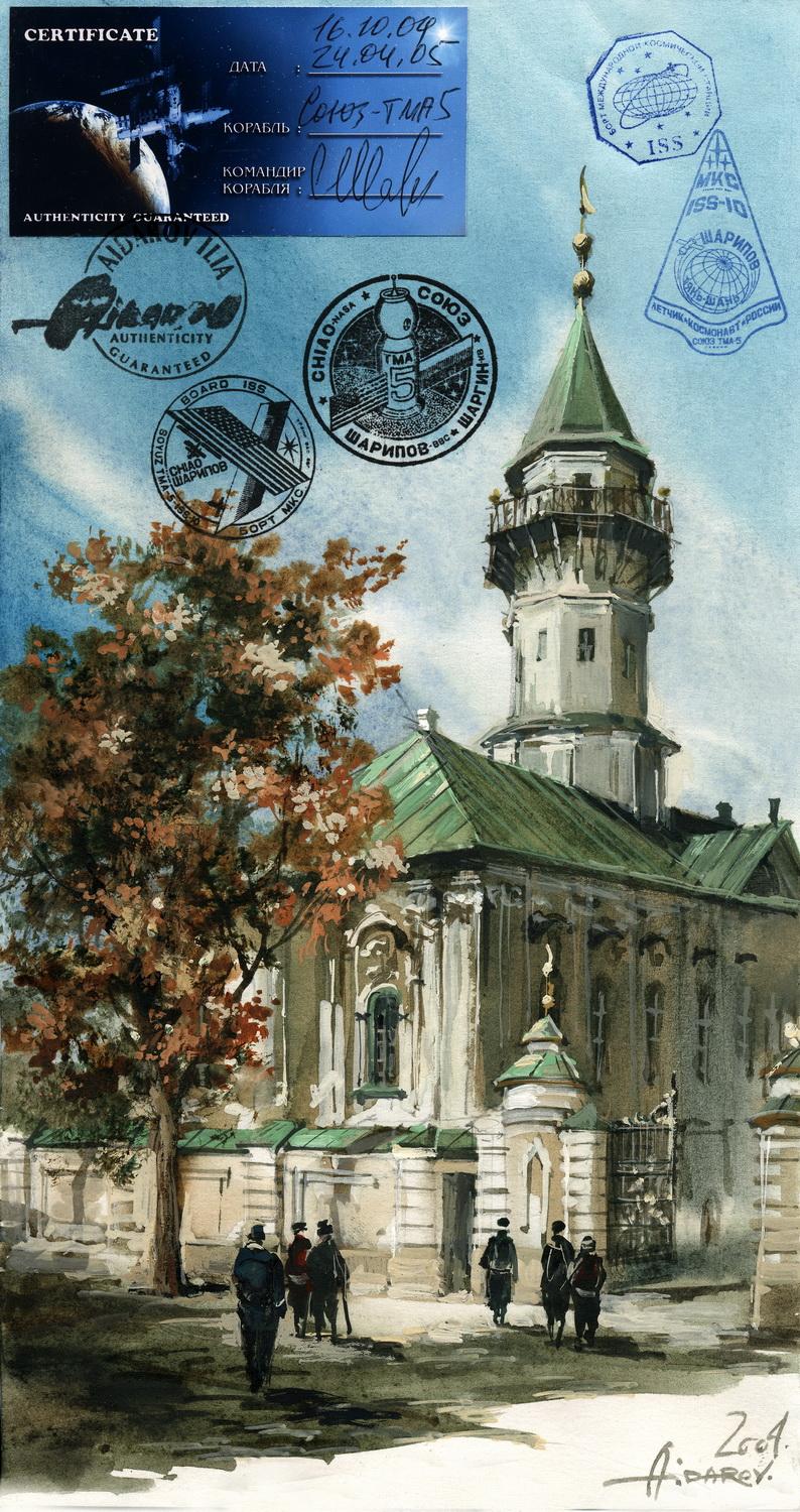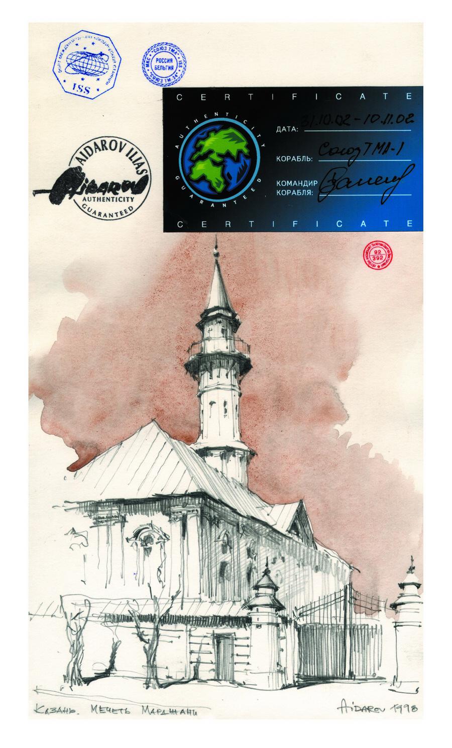 В 2002г. Ильяс Айдаров стал первым в истории человечества художником, которому посчастливелось провести персональную художественную выставку в космосе на борту Международной Космической Станции