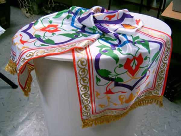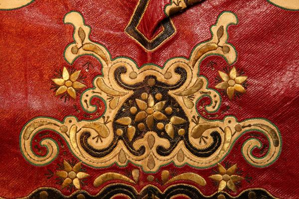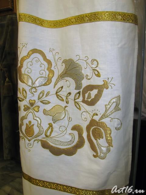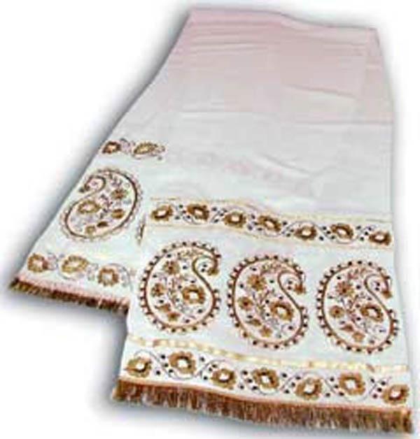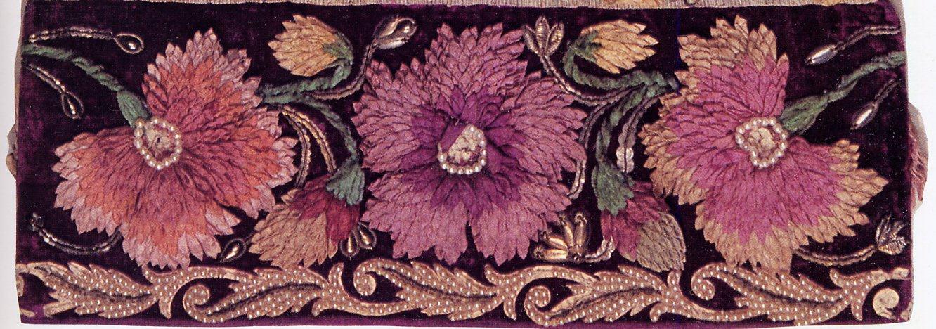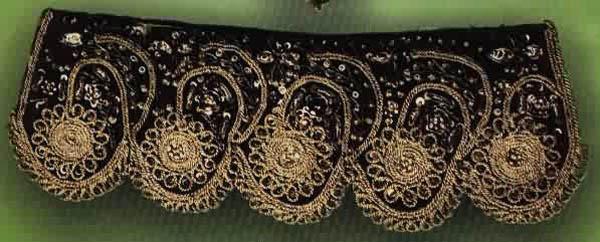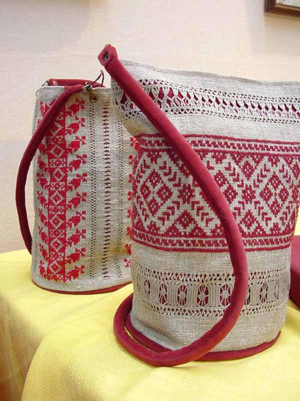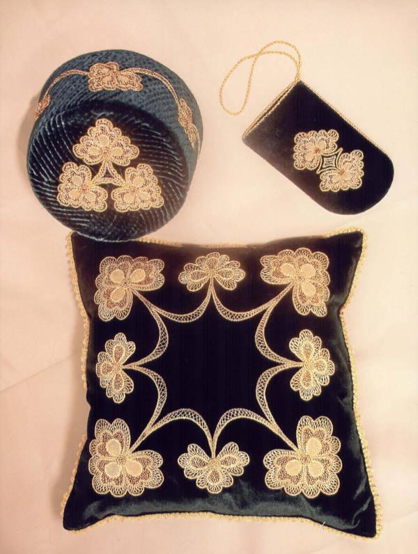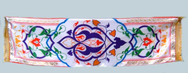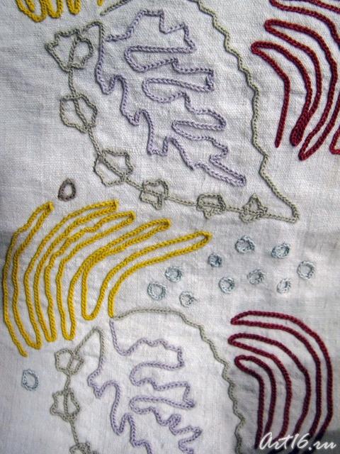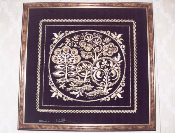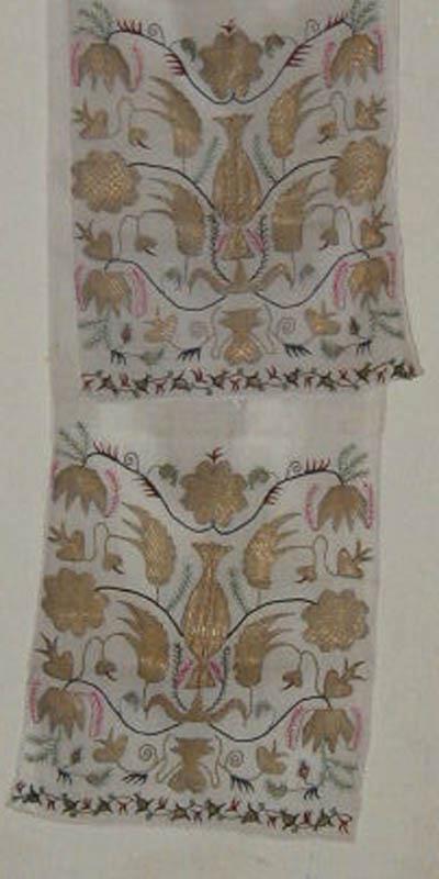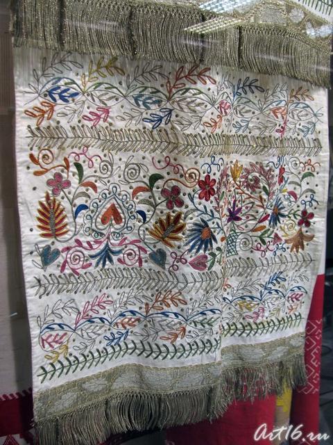 Вышивки по большей части исполняются тамбуром, и композиция узора состоит из мотивов растительного царства, вышивают шелками, золотом, серебром и гарусом. Любимыми тонами являются: зеленые, желтые, синие и красные цвета. Красивы и молитвенные коврики - намазлыки, вышитые гарусом в очень сочных и ярких тонах импрессионистического колорита.