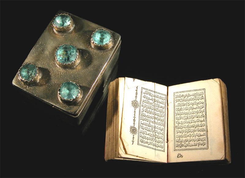 Футляры - битю имеют вид металлической коробки для корана и молитвы и бывают часто очень красивой работы. Всем хорошо известен ящик для корана Касимовской работы 1612 года, представляющий шедевр ювелирного искусства и послуживший, вероятно, образцом впоследствии казанским мастерам-татарам-ювелирам.